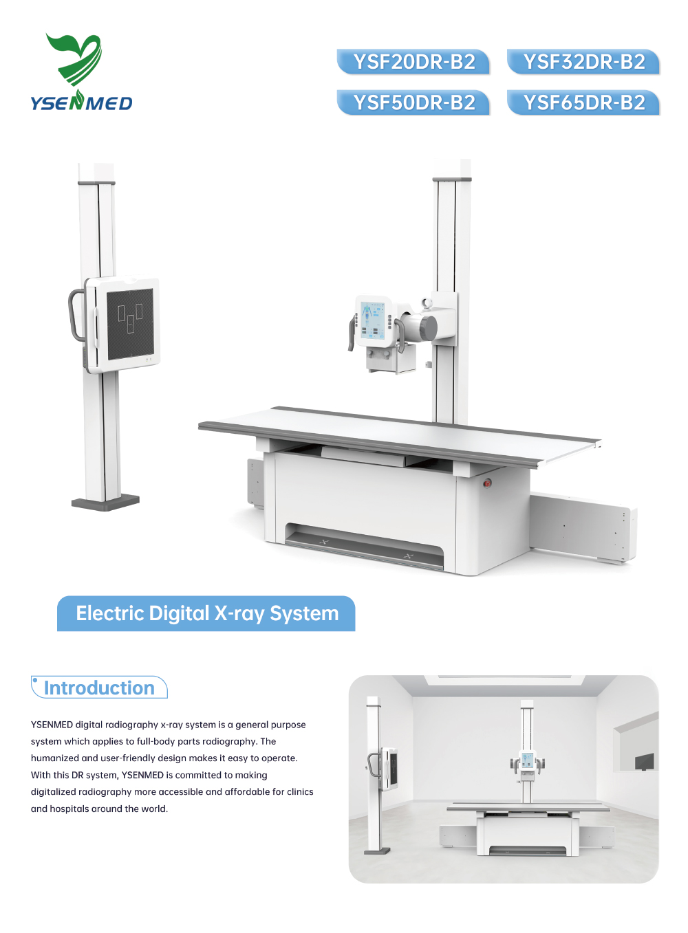 YSENMED digital radiography x-ray system is a general purpose system which applies to full-body parts radiography. The humanized and user-friendly design makes it easy to operate.With this DR system, YSENMED is committed to making digitalized radiography more accessible and affordable for clinics and hospitals around the world.
