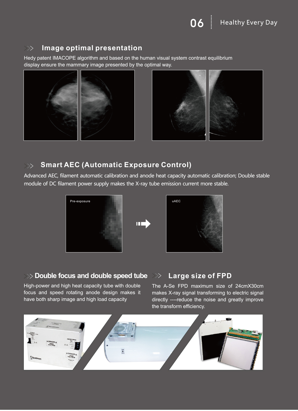Hedy patent IMACOPE algorithm and based on the human visual system contrast equilibrium display ensure the mammary image presented by the optimal way.