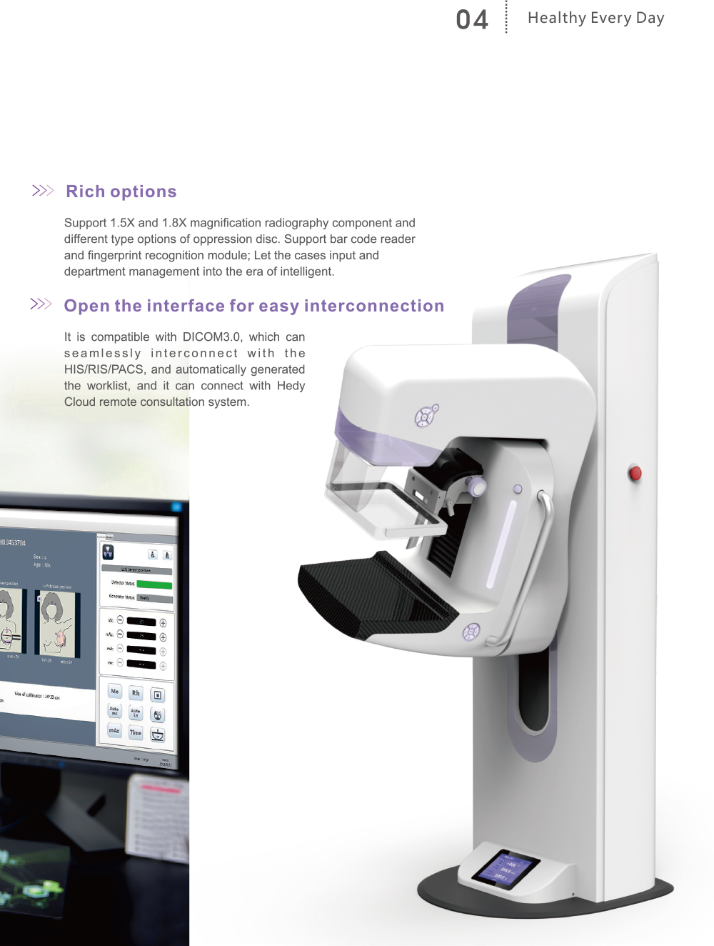 It is compatible with DlCOM3.0, which can seamlessly interconnect with the HIS/RIS/PACS, and automatically generated the worklist, and it can connect with Hedy Cloud remote consultation system.