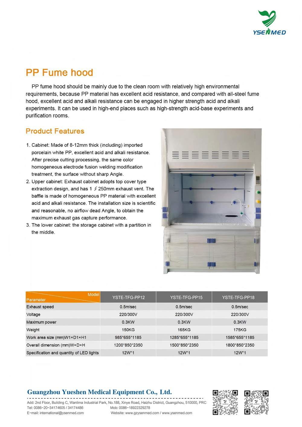 PP Material Laboratory Exhaust Chemical Fume Hood