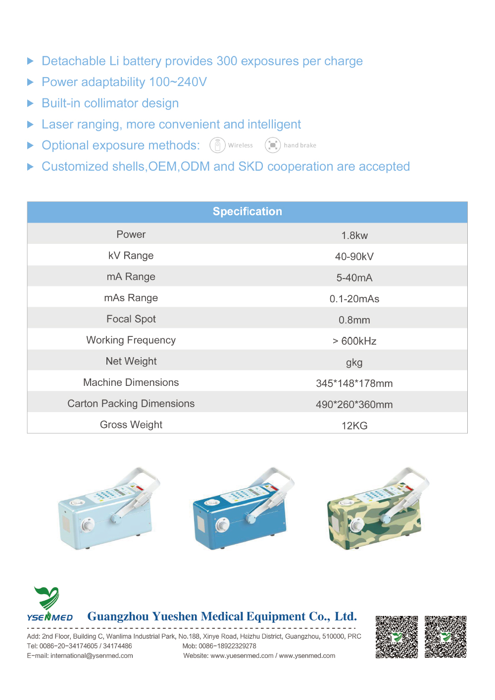 YSENMED 1.8kW Light Weight Portable X-ray Unit